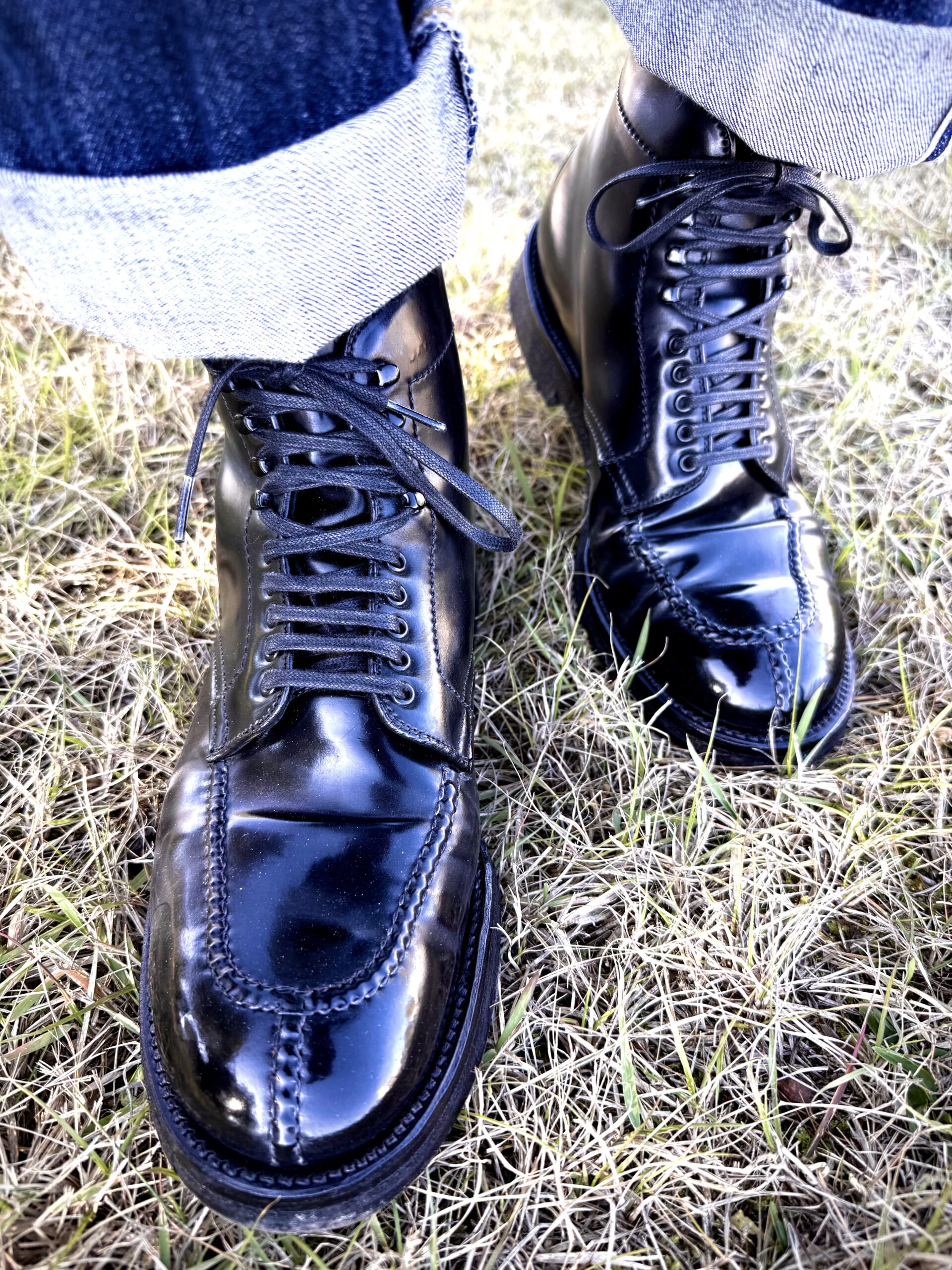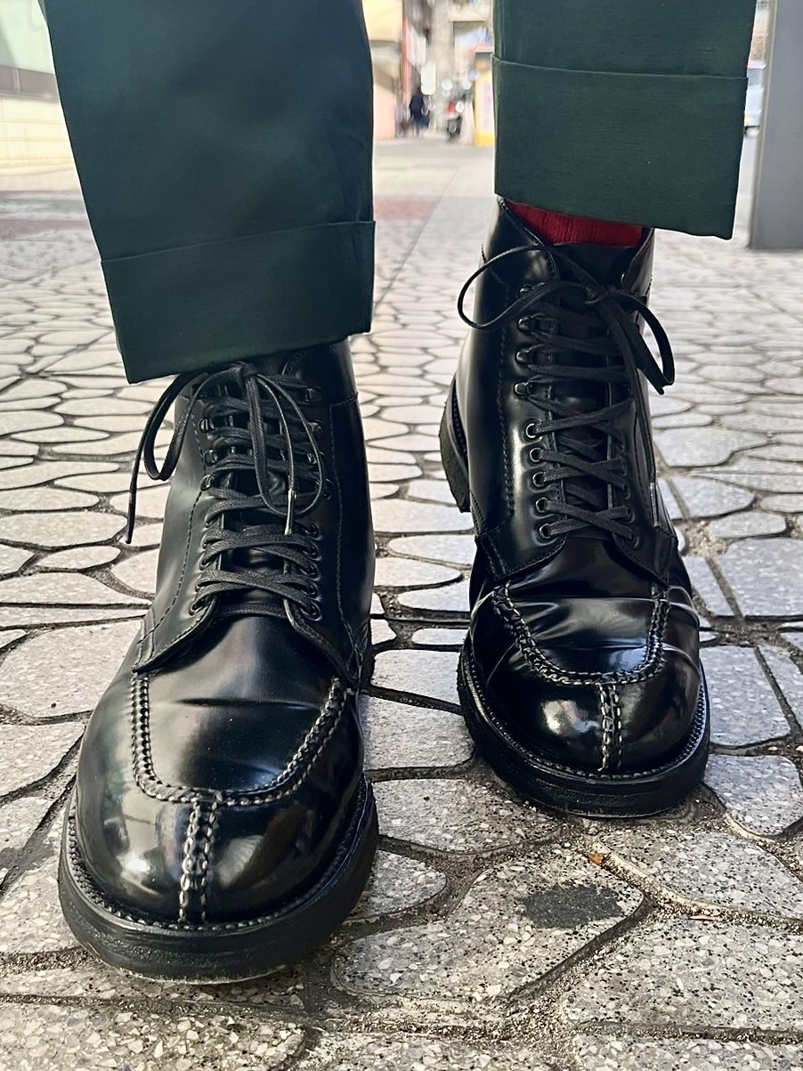 タンカーブーツといえば8カラー(ダークバーガンディ)が王道ですが、4545Hのブラックコードバンには、それに勝るとも劣らない凄みがあります。