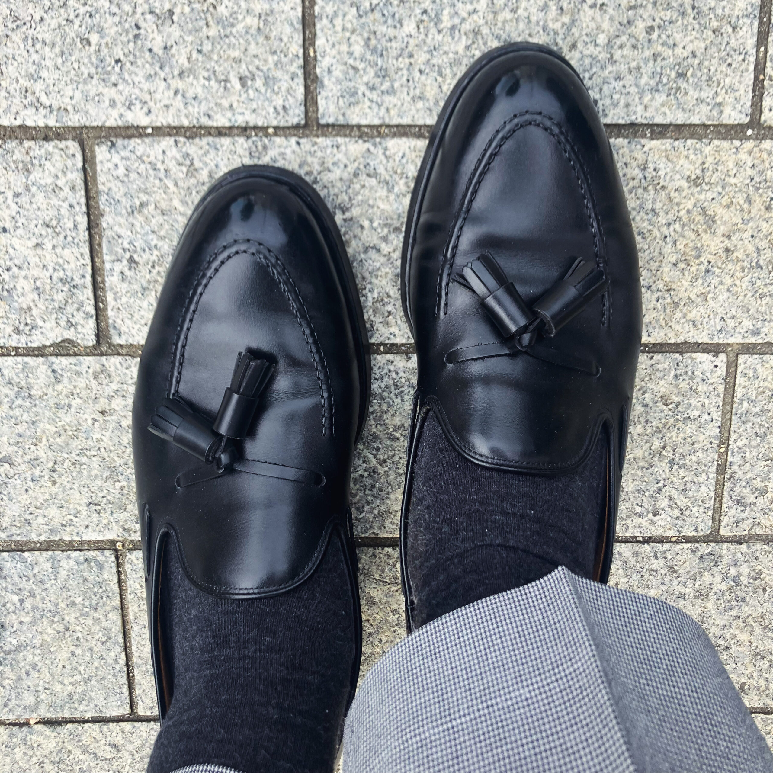 ただ、もし今日が人生の節目になるような特別な日なら、僕は迷わずジョンロブの「シティ2」を手に取ります。 150年以上の歴史を持ち、かつては王室御用達でもあった「王者の靴」。世界最高峰とも言われる革質と、一切の無駄を削ぎ落としたシルエットは、履くだけで自分のステージを一段引き上げてくれるような感覚があります。「オードリー」と「シティ2」、この二大巨頭を状況に応じて履き分けるのが、筆者なりの黒ストチの楽しみ方です。
