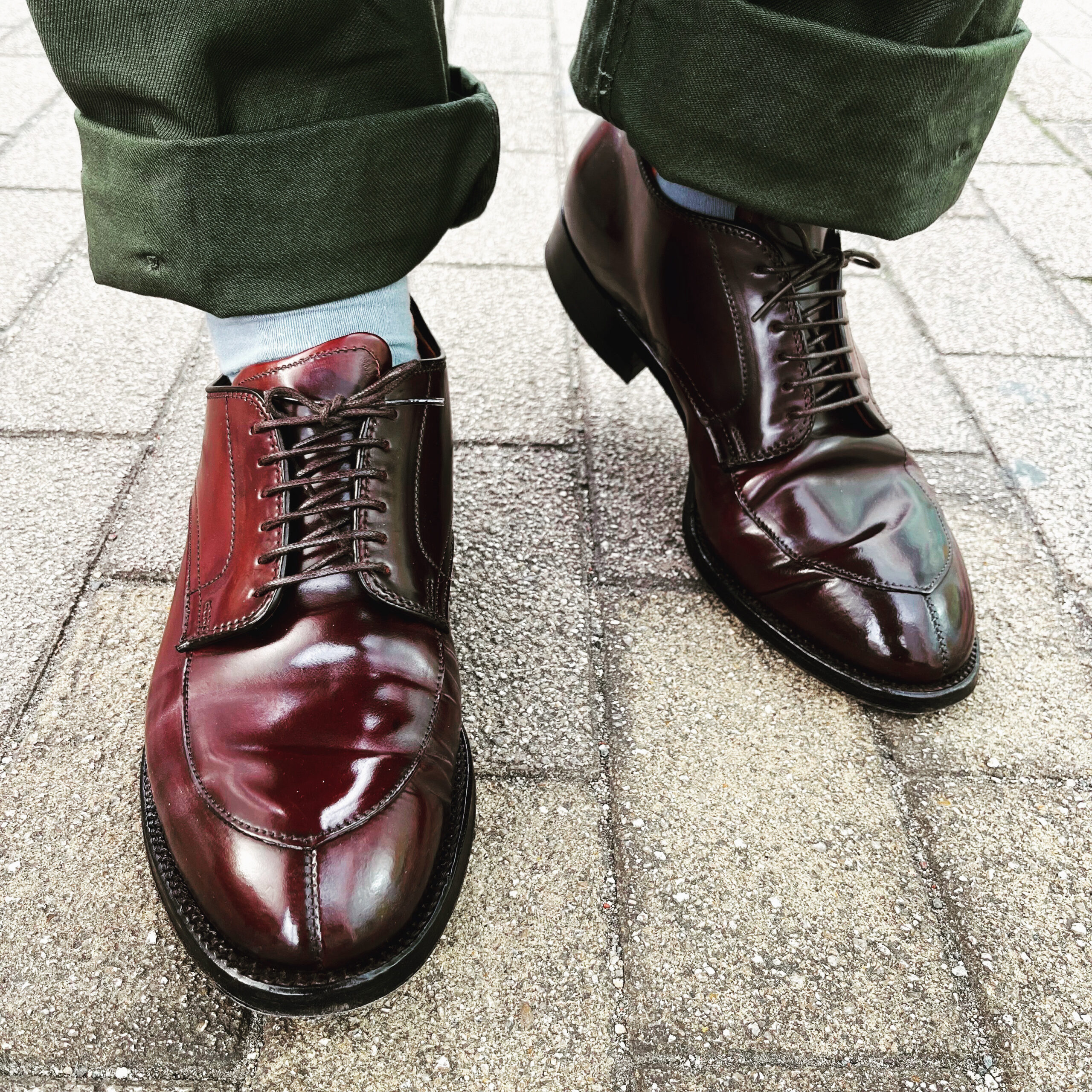 「今日はとにかく歩く。でもスニーカーにはしたくない」。そんな日は、迷わずオールデンの54321、通称「Vチップ」を選びます。 この靴に使われている「モディファイドラスト」という木型には、面白い歴史があります。もともとは足に障害を持つ人のための医療用矯正靴をルーツとしており、土踏まずをグッと支えて、指先を自由に解放する独特の形状をしています。 履いた瞬間に足裏にフィットし、一歩踏み出すのが楽しくなるような歩行性能。スニーカーのような軽快さがあり、一日が終わった後の足の疲れが明らかに違います。一度この心地よさを知ると、抜け出せなくなる名作です。