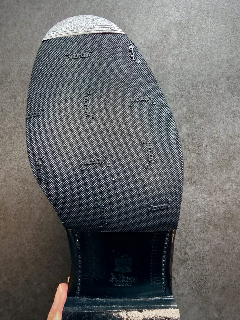 • 【デメリット】ゴムを貼ることで、レザーソール特有の通気性が多少損なわれます。また、ソールの厚みがわずかに増すため、繊細なドレスシューズでは見た目のバランスに若干のずれが生じる場合もあります(ぱっと見の違和感はないため、あまり心配はいらないとは思います)。